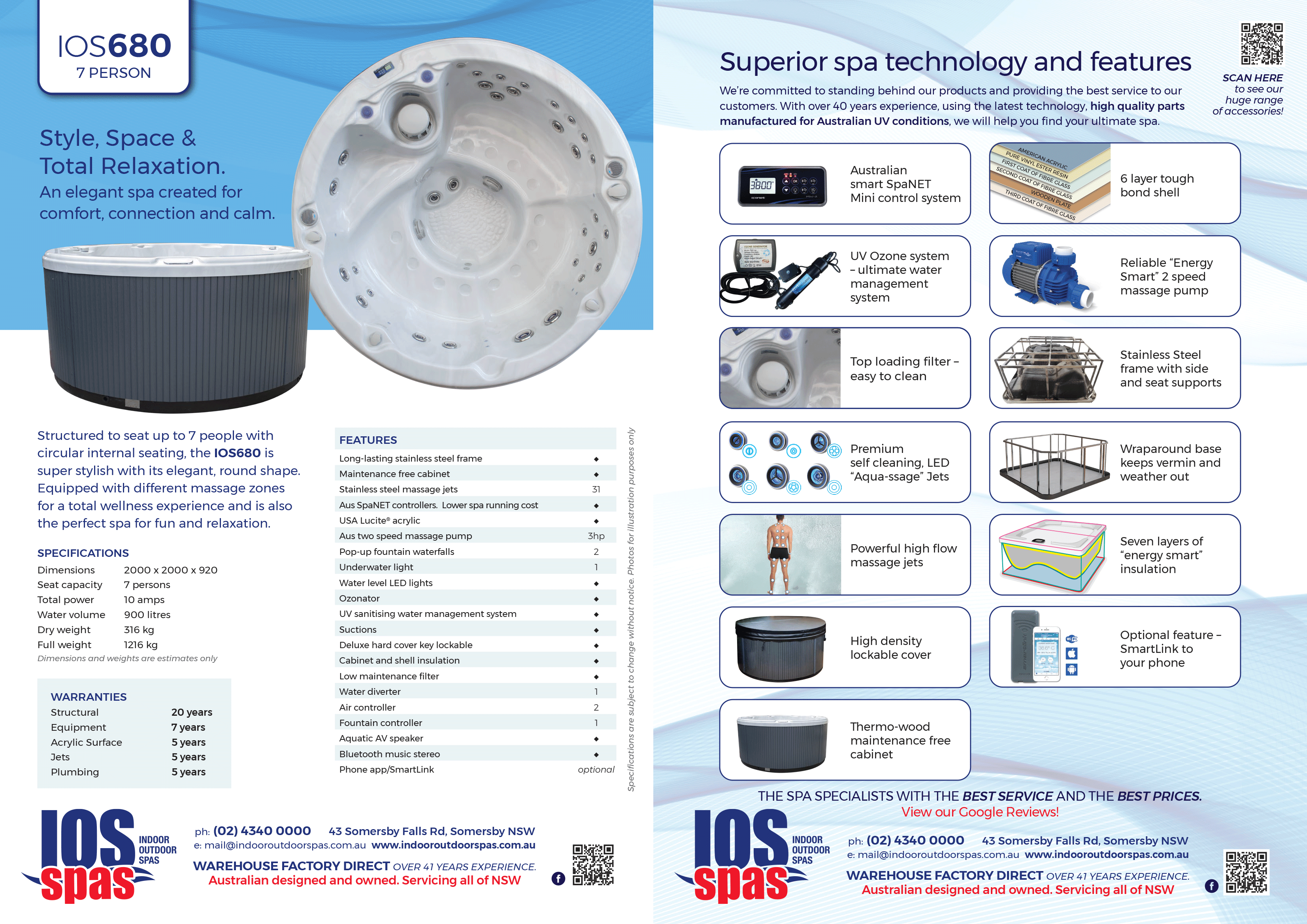 Structured to seat up to 7 people with circular internal seating, the IOS680 is super stylish with its elegant, round shape. Equipped with different massage zones for a total wellness experience and is also the perfect spa for fun and relaxation