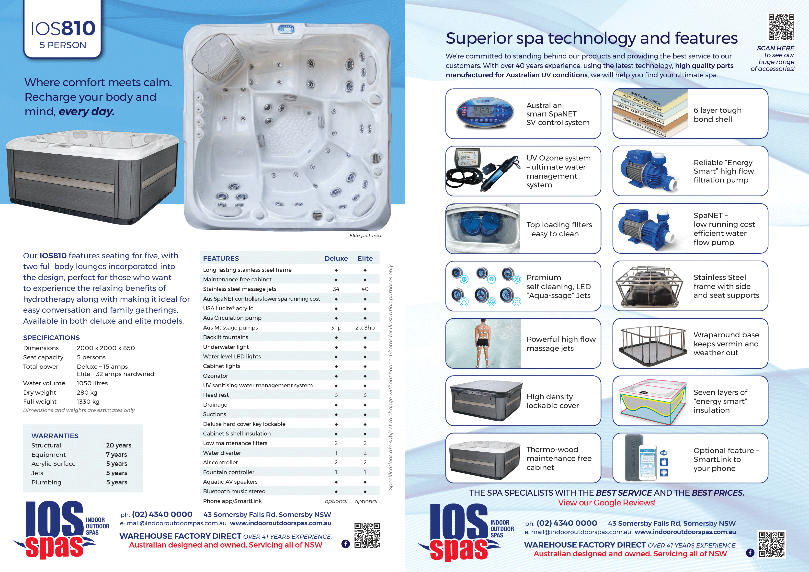 Our IOS810 features seating for five, with two full body lounges incorporated into the design, perfect for these who want to experience the relaxing benefits of hydrotherapy along with making it ideal for easy conversation and family gatherings.