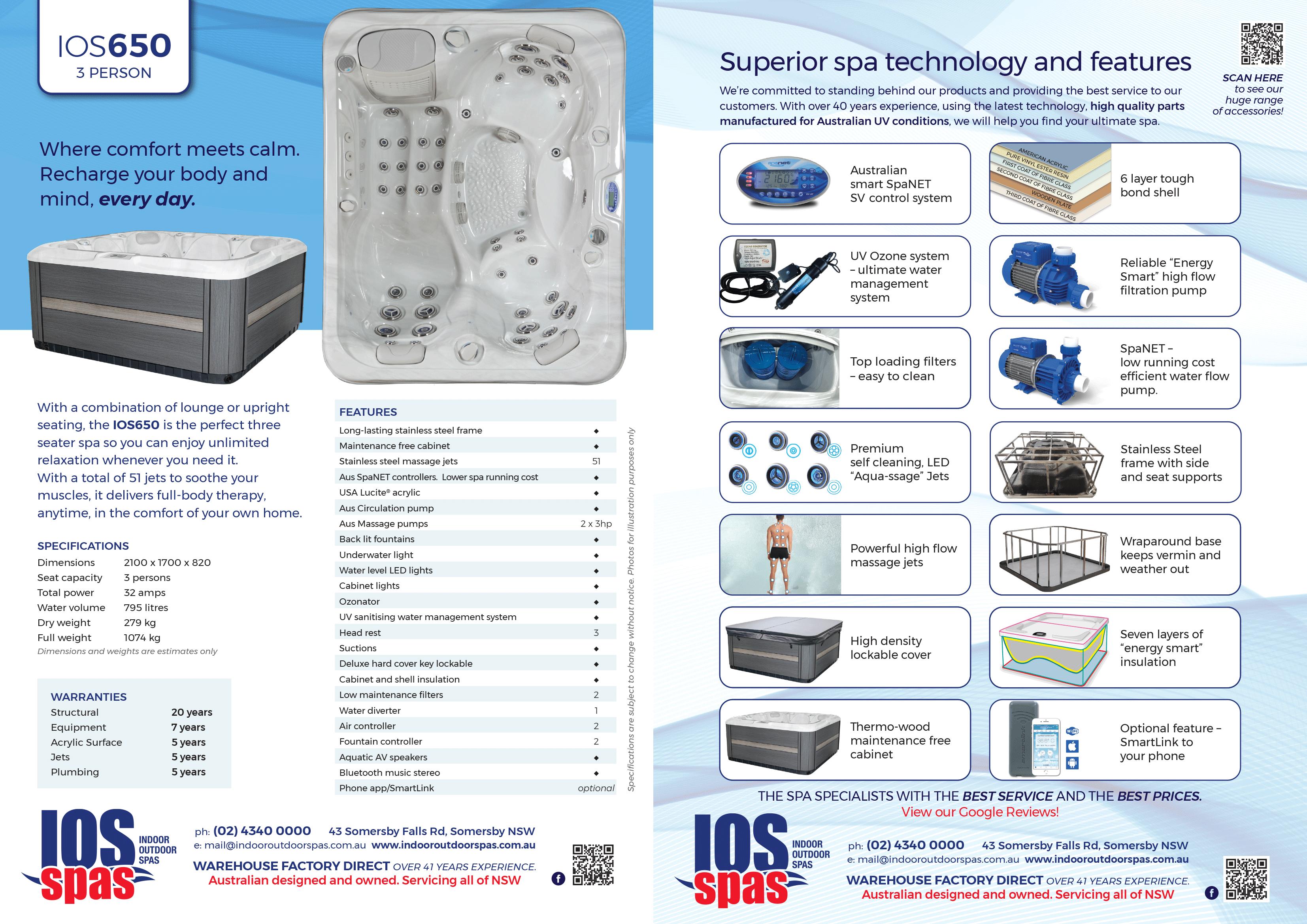 With a combination of lounge or upright seating, the IOS650 is the perfect three seater spa so you can enjoy unlimited relaxation whenever you need it. With a total of 51 jets to soothe your muscles, it delivers full-body therapy, anytime, in the comfort of your own home.