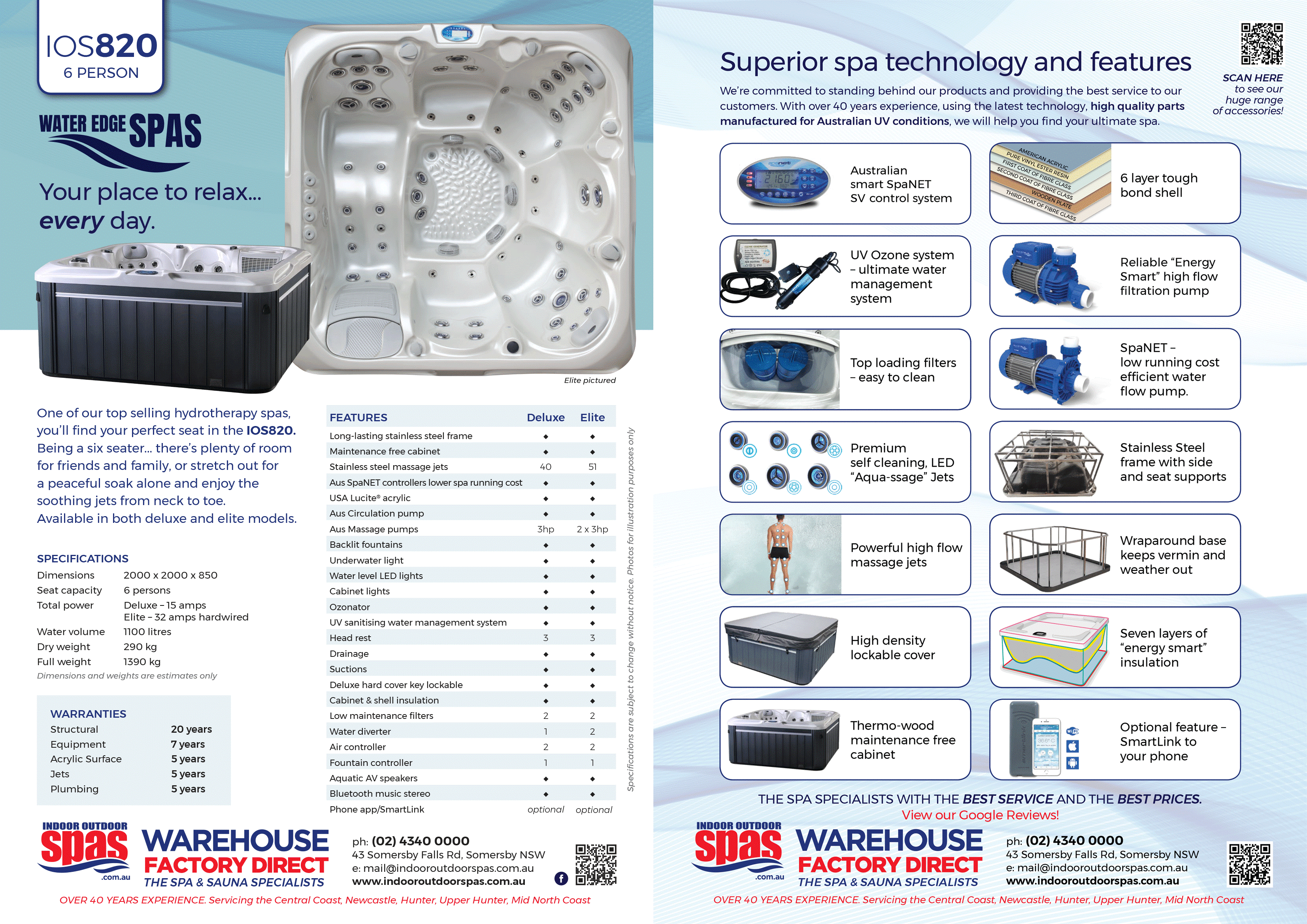 One of our top selling hydrotherapy spas, you'll find your perfect seat in the IOS820. Being a six seater..... there's plenty of room for friends and family, or stretch out for a peaceful soak alone and enjoy the soothing jets neck to toe.